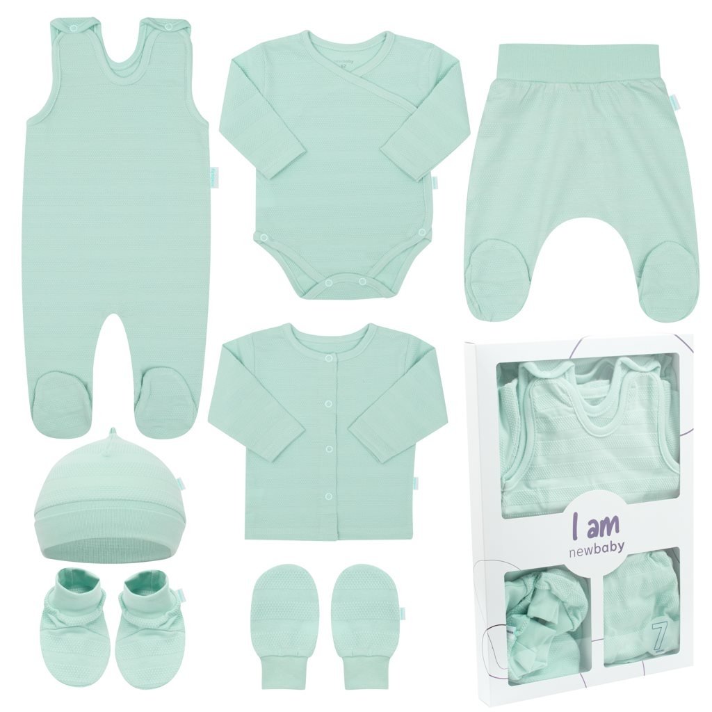 7-dielna dojčenská súpravička do pôrodnice New Baby I AM mätová 56 (0-3m)