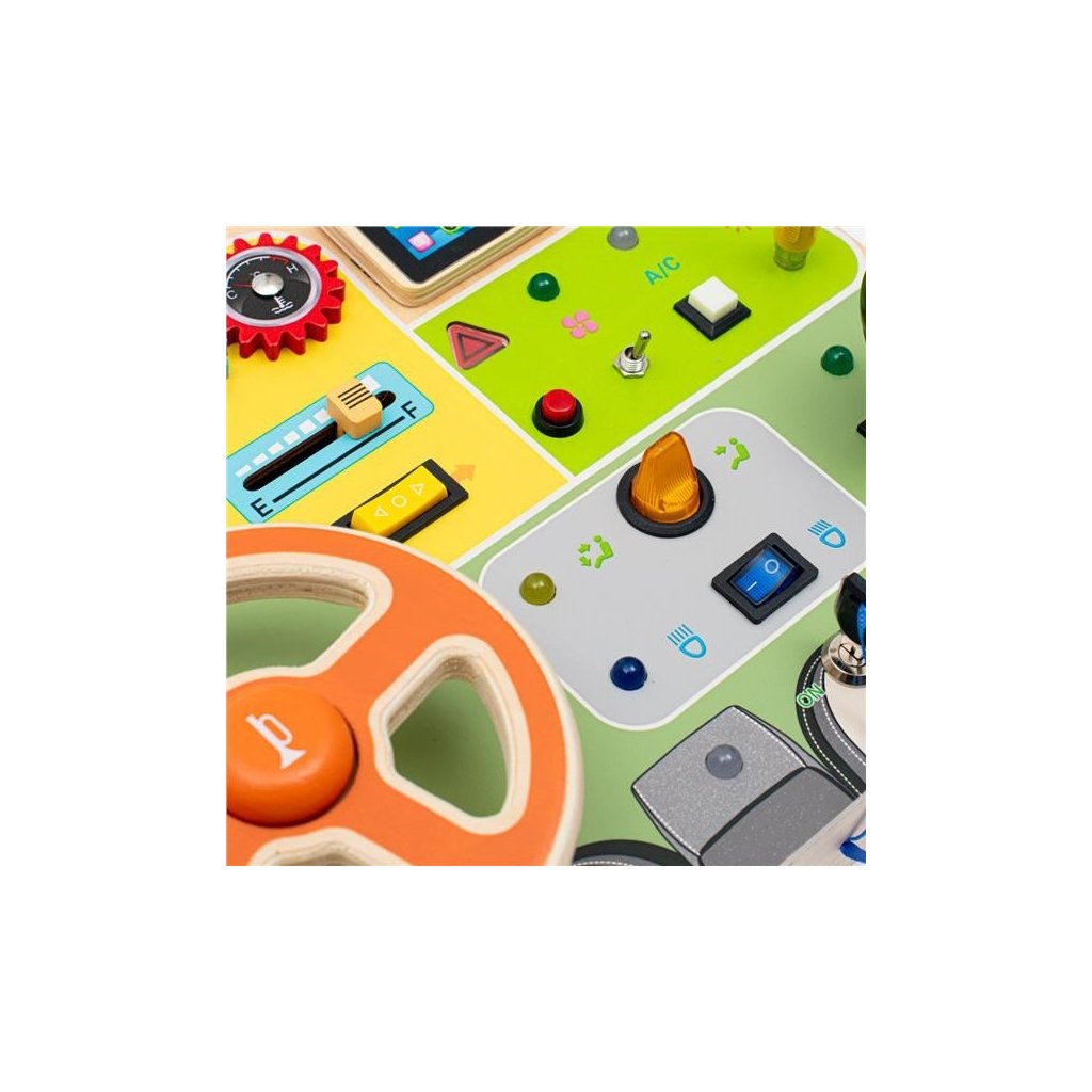 Montessori Activity Board od značky Baby Mix predstavuje ideálnu kombináciu zábavy a učenia pre deti od 3 rokov. Multifunkčný panel s interaktívnym volantom, prepínačmi, svetlami a realistickými detailmi je výborným nástrojom na rozvoj motorických zručností, logického myslenia a koordinácie ruky a oka.