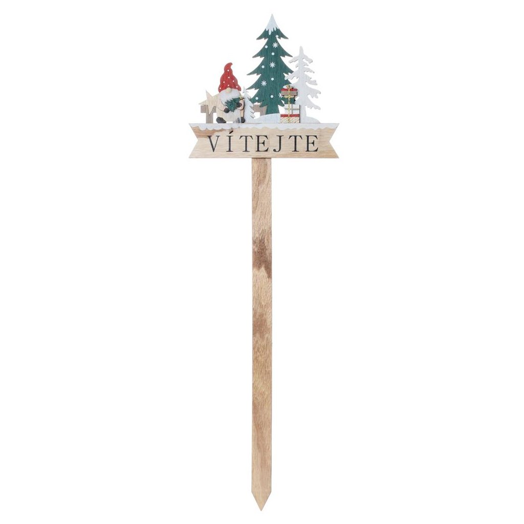 Cena za 1 ks: 4.49, AKCIA! ZÁPICH VÍTEJTE SANTA STROMČEKY DREVO ZEL/NAT/ČER 22.5*1*75cm