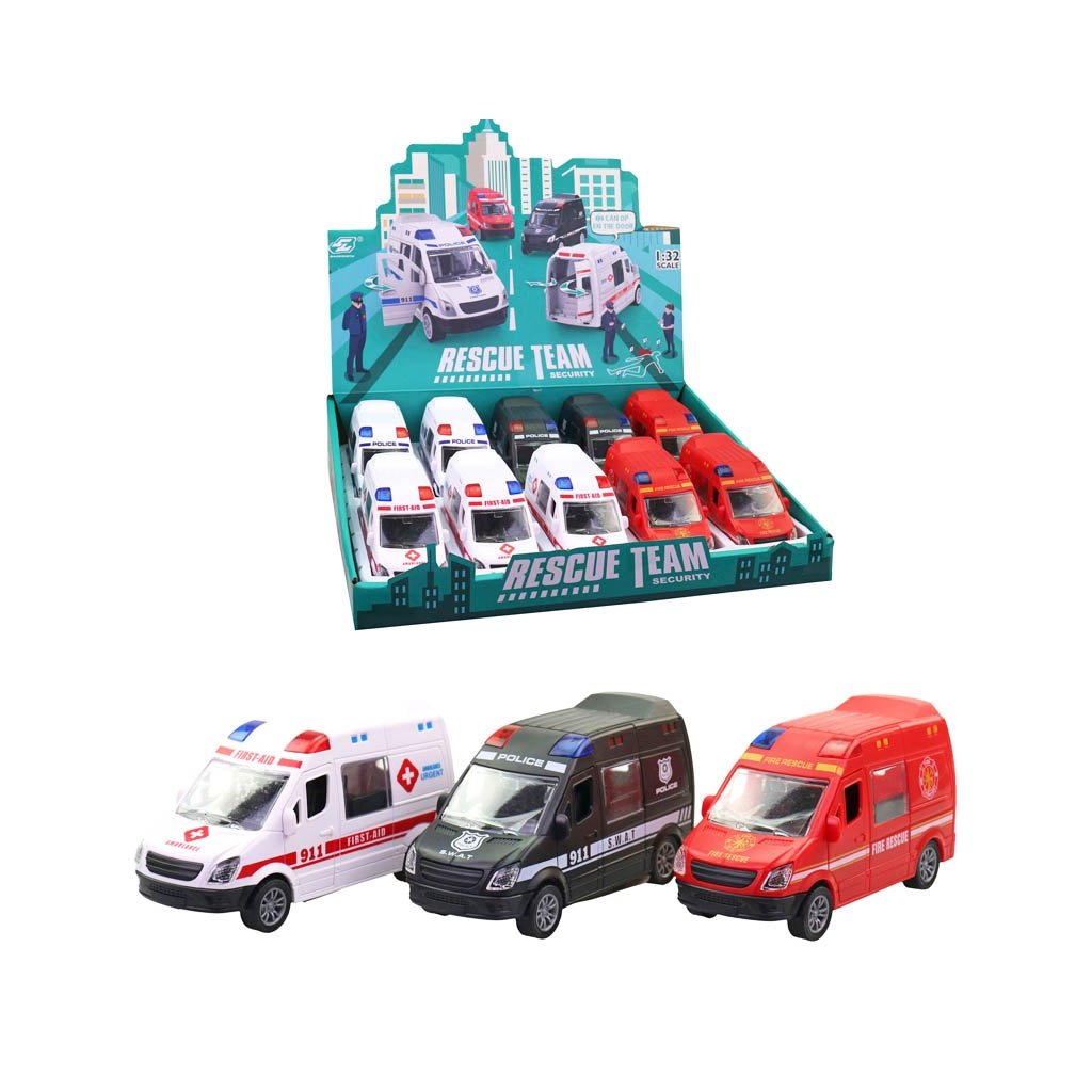 Záchranné autíčka na zotrvačník. Hračka je určená pre deti 3+. Rozmery hračky sú 13,5 x 7 x 5. Materiál hračky je plast. Balenie hračky je display box 10ks Batérie nie sú súčasťou balenia.Dodatočné parametre