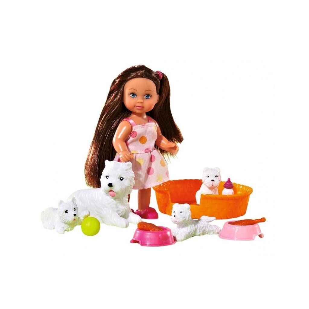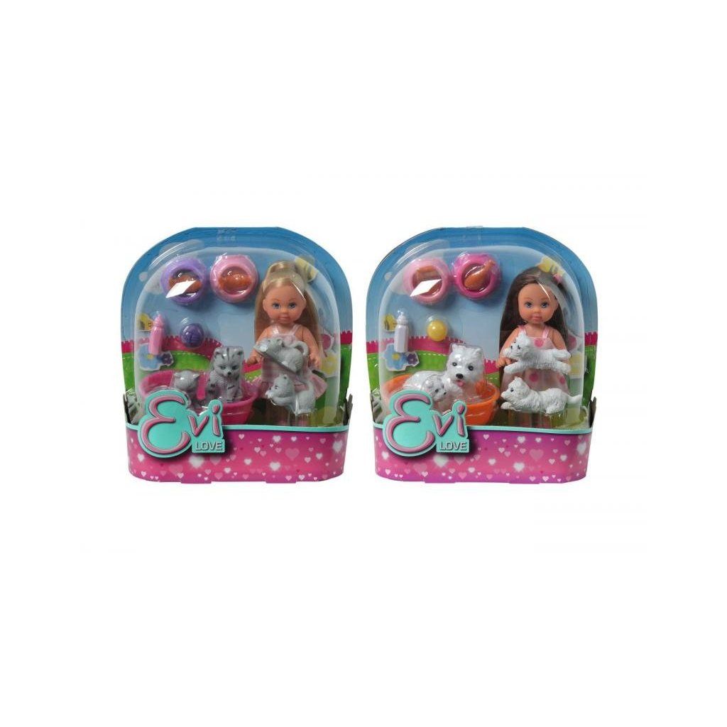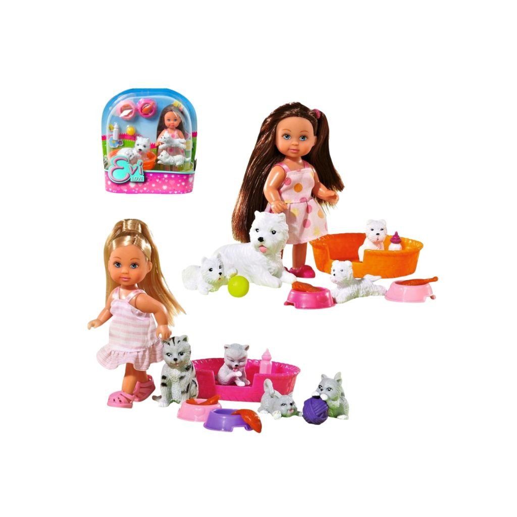 Bábika Evička s domácimi miláčikmi je milý set pre deti, ktoré majú rady bábiky aj zvieratká, balenie obsahuje bábiku vysokú 12 cm, 4 zvieratká a doplnky, dostupné sú varianty so psíkmi alebo s mačičkami, deti si môžu vytvárať vlastné príbehy zo starostlivosti o domácich miláčikov a rozvíjať fantáziu, kreativitu a sociálne zručnosti pri hre. Cena za jeden set.Dodatočné parametre