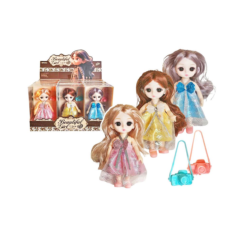 Bábika s fotoaparátom, s ktorou sa deti môžu hrať na fotografovanie a vytvárať vlastné príbehy plné fantázie. Na výber je z niekoľkých druhov. Má rozmer 15 cm. Balené v boxe po 9 ks. Cena je za kus. Vhodné pre deti vo veku 3+ rokov.Dodatočné parametre