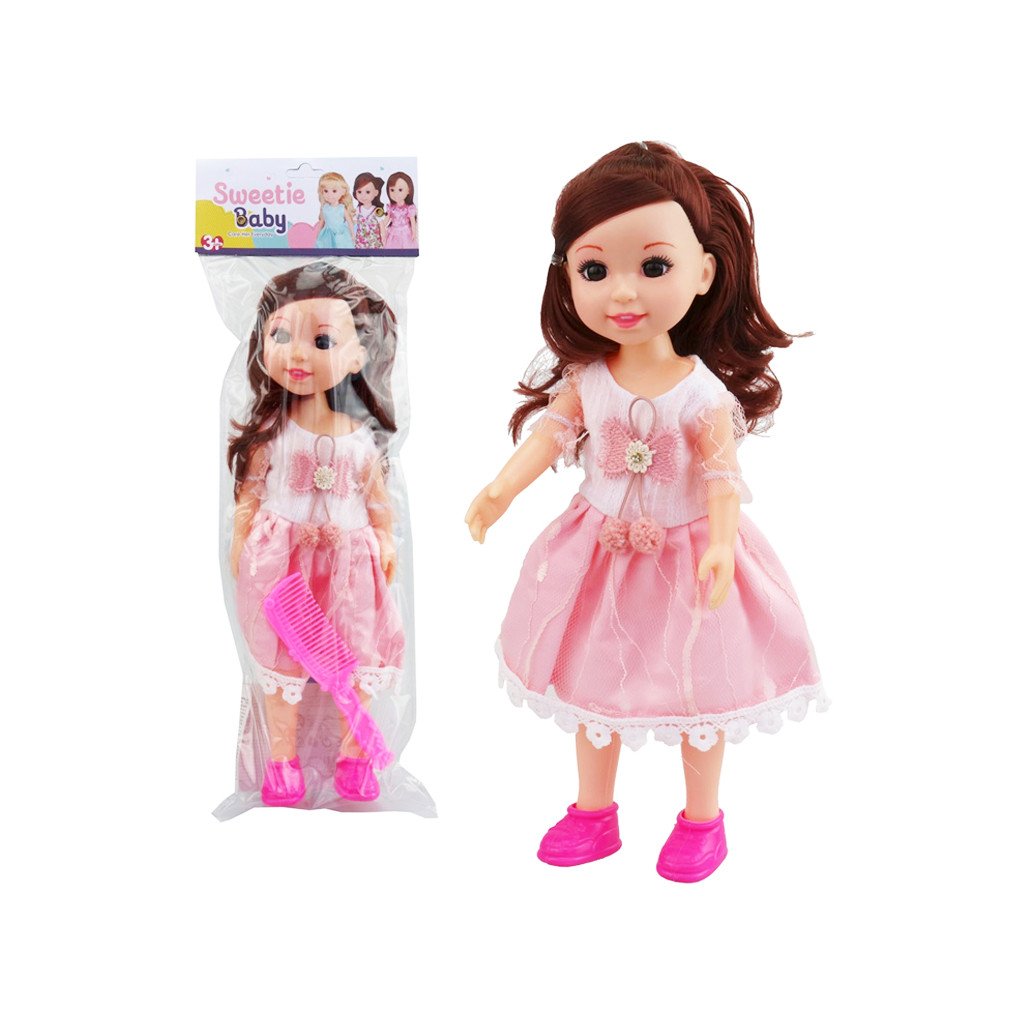 Bábika s hrebienkom, hračka má rozmer 31 x 11 x 6,5 cm. Cena je za 1 kus. Vhodné pre deti 3+.