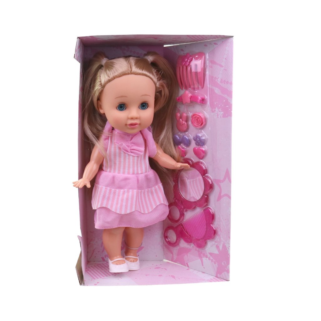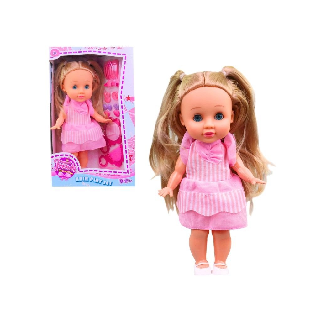 Väčšia detská bábika s kaderníckym príslušenstvom a výškou 30 cm je ideálna na hry na starostlivosť. Set obsahuje rôzne hrebene a sponky na tvorbu kretívnych účesov. Podporuje empatiu, fantáziu a tvorivé hranie.Dodatočné parametre