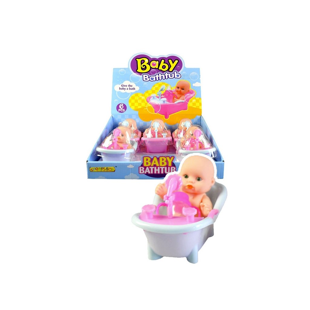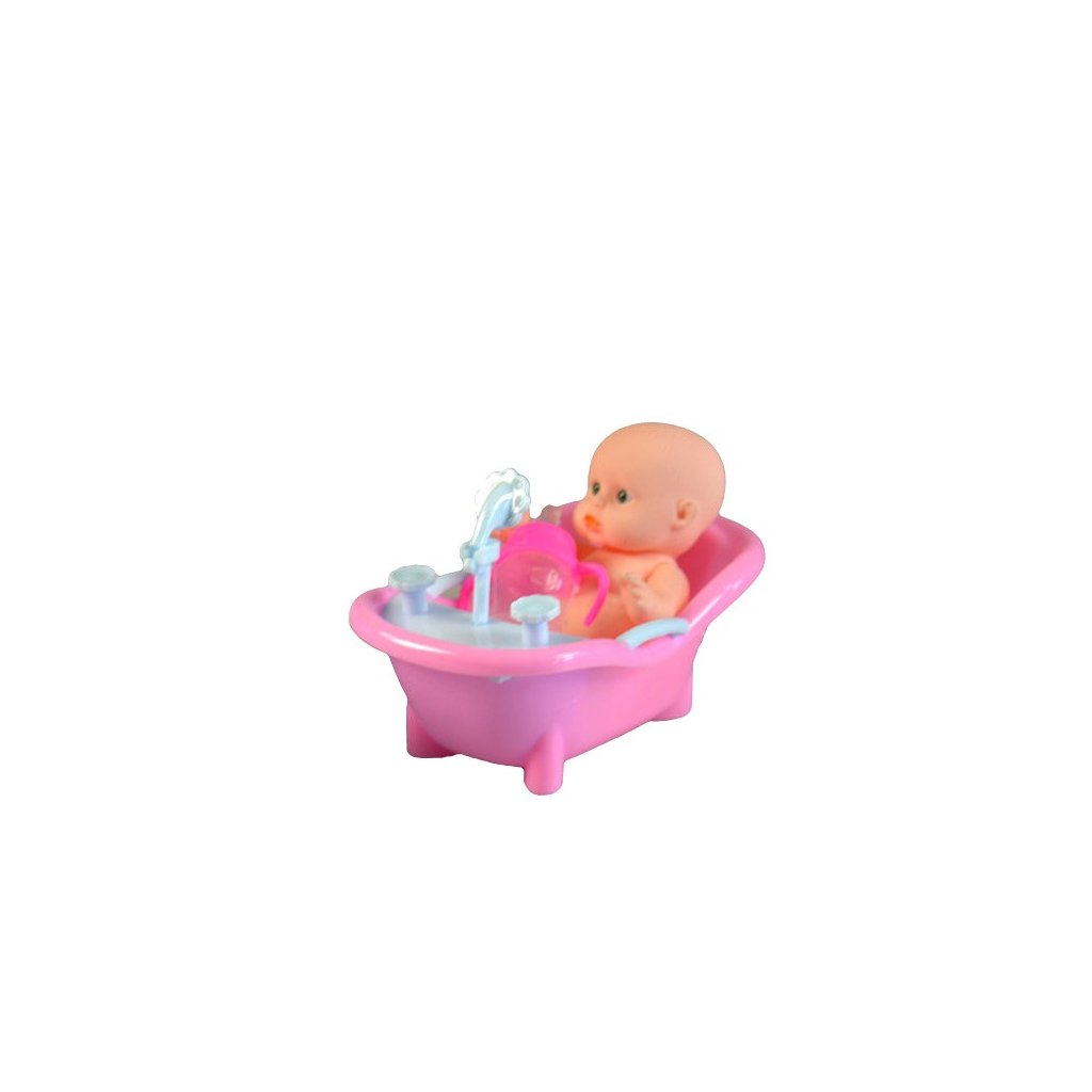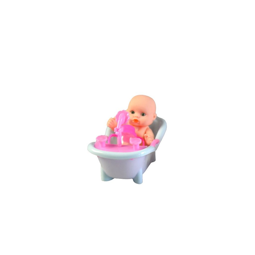 Bábika 10 cm vo vaničke 14 cm s fľaškou na mlieko 6 cm, v ponuke s ružovou, alebo bledo modrou vaničkou. Cena je za kus.Dodatočné parametre