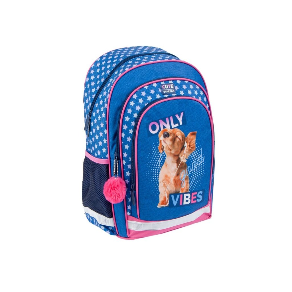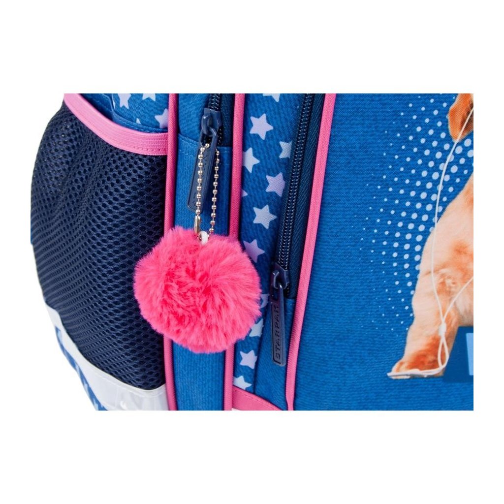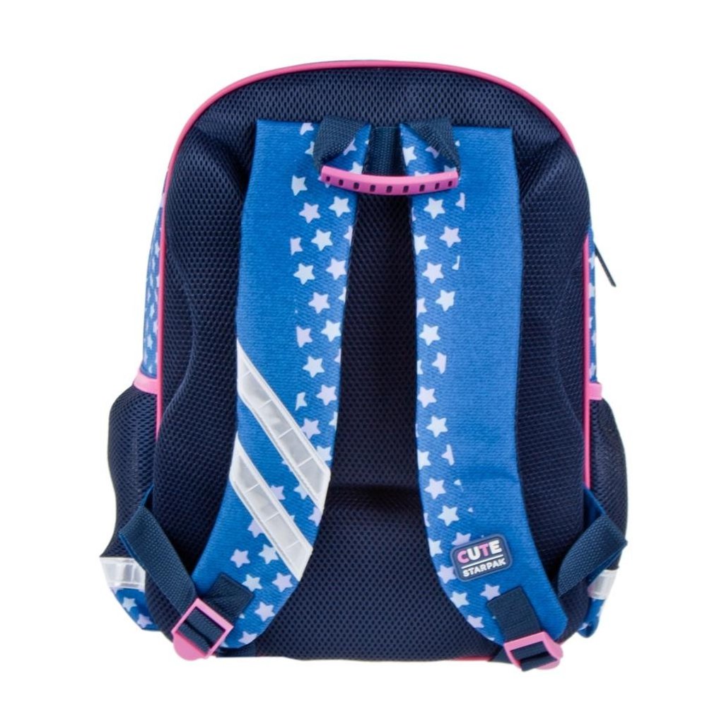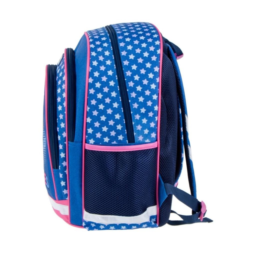 Batoh sa skladá z 1 veľkej priehradky a 2 priestranných predných vreciek, 2 bočných sieťovaných vreciek na fľašu Má nastaviteľné ramenné popruhy, rukoväť vystuženú gumičkou a reflexné pruhy. Určené pre deti vo veku 3+. Rozmery výrobku sú 40x29x20cm.Dodatočné parametre