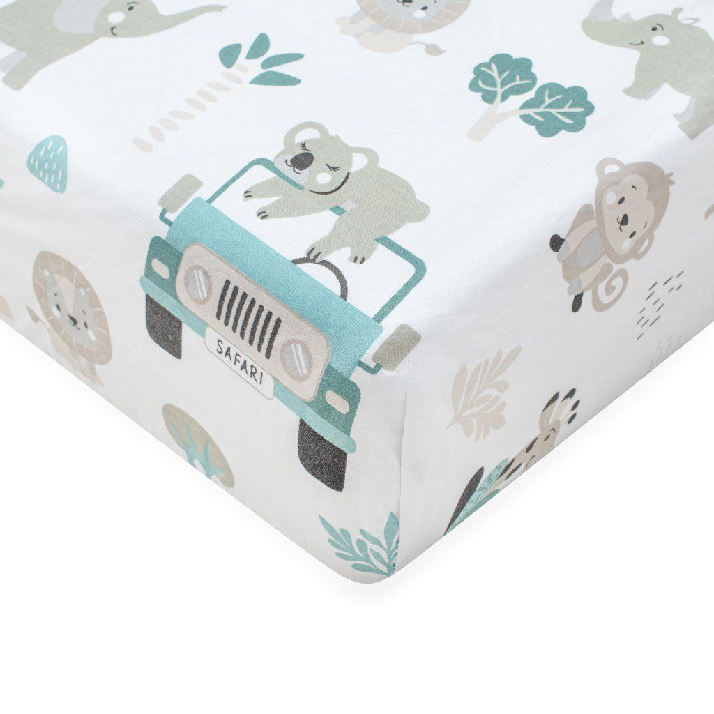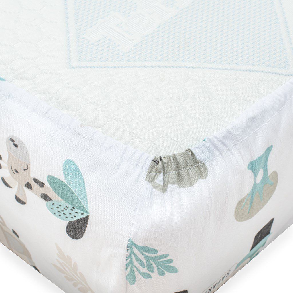 Bavlnené prestieradlo New Baby Safari je vyrobené z hladkej a na dotyk príjemnej bavlnenej látky-tkanina. Krásny detský motiv, polahodí detským očičkám. Všitá gumička zabraňuje skĺznutiu z matraca, zaručuje správne napnutie plachty a umožňuje prispôsobiť sa akémukoľvek tvaru. Prestieradlo je vhodné pre matrace s rozmermi 120x60 cm. Prestieradlo je klasické bavlnené, ktoré nie je elastické a preto má rozmery 90x150 cm, aby krásne sedelo na celom matraci aj zo spodnej strany.- hladká bavlnená tkanina