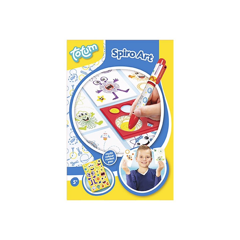 SPIRO ART - výrob si vlastnú špirálovú postavičku, hviezdu alebo kvetinu pomocou šablóny. Vynikajúca hračka pre rozvoj manuálnej zručnosti. Všetko potrebné na výrobu nájdete vo vnútri balenia.Balenie obsahuje: špirálovú kresliacu šablónu, blok, hárok samolepiek, dúhovú prepisovačku so šiestimi farbami a kreslený návod.
