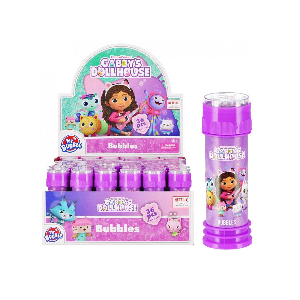 Bublifuk Gabbys Dollhouse, má rozmer 11 cm a objem 55 ml. Balené po 36 kusoch v boxe. Cena je za kus. Vhodné pre deti vo veku 3+ rokov.Dodatočné parametre
