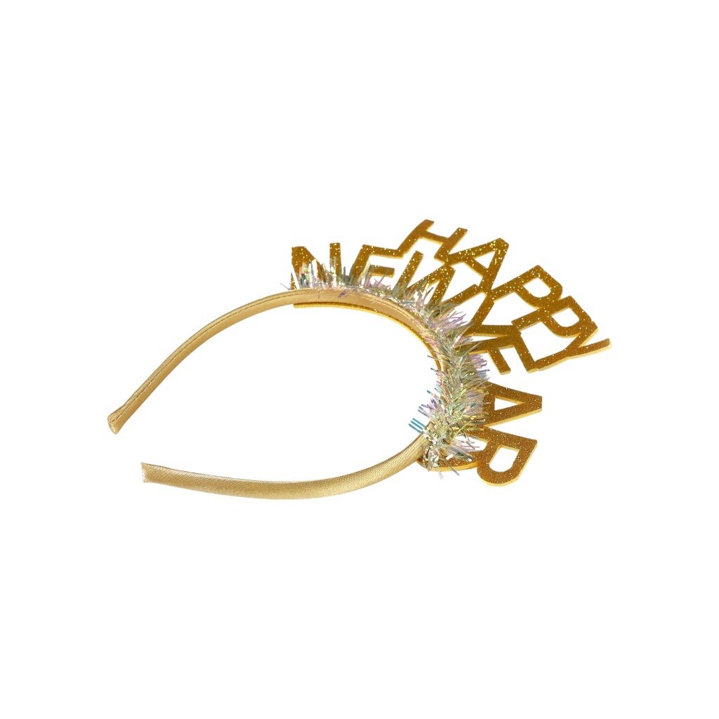 Oslnivá zlatá čelenka s trblietavým nápisom HAPPY NEW YEAR je senzačným doplnkom na oslavu alebo večierok pri vítaní Nového roka!Dodatočné parametre