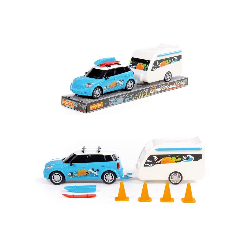 Cruise car z továrne Polesie je realistické auto vybavené na cestovanie. Hračka je vyrobená v pestrých farbách, doplnená o imitáciu svetlometov a vybavená pogumovanými kolieskami. Na streche auta sú nainštalované strešné lyžiny na prepravu surfu a kufra, ktoré sú súčasťou súpravy. Pre spestrenie hry a jej ešte zaujímavejšie je auto vybavené prívesným vozíkom, v ktorom môžete prepravovať malé náklady.Dodatočné parametre