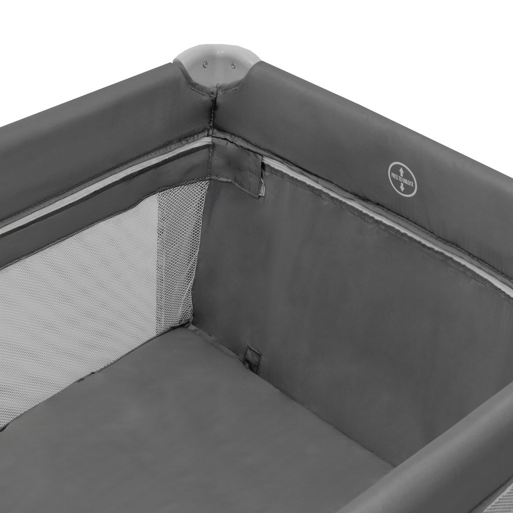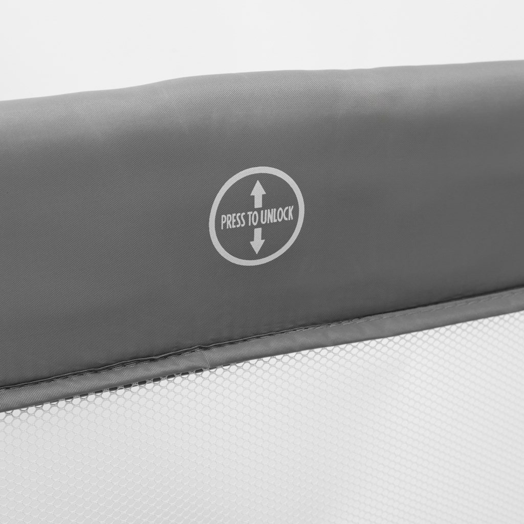 - Sieťované bočnice pre optimálnu cirkuláciu vzduchu a vizuálny kontakt s dieťaťom