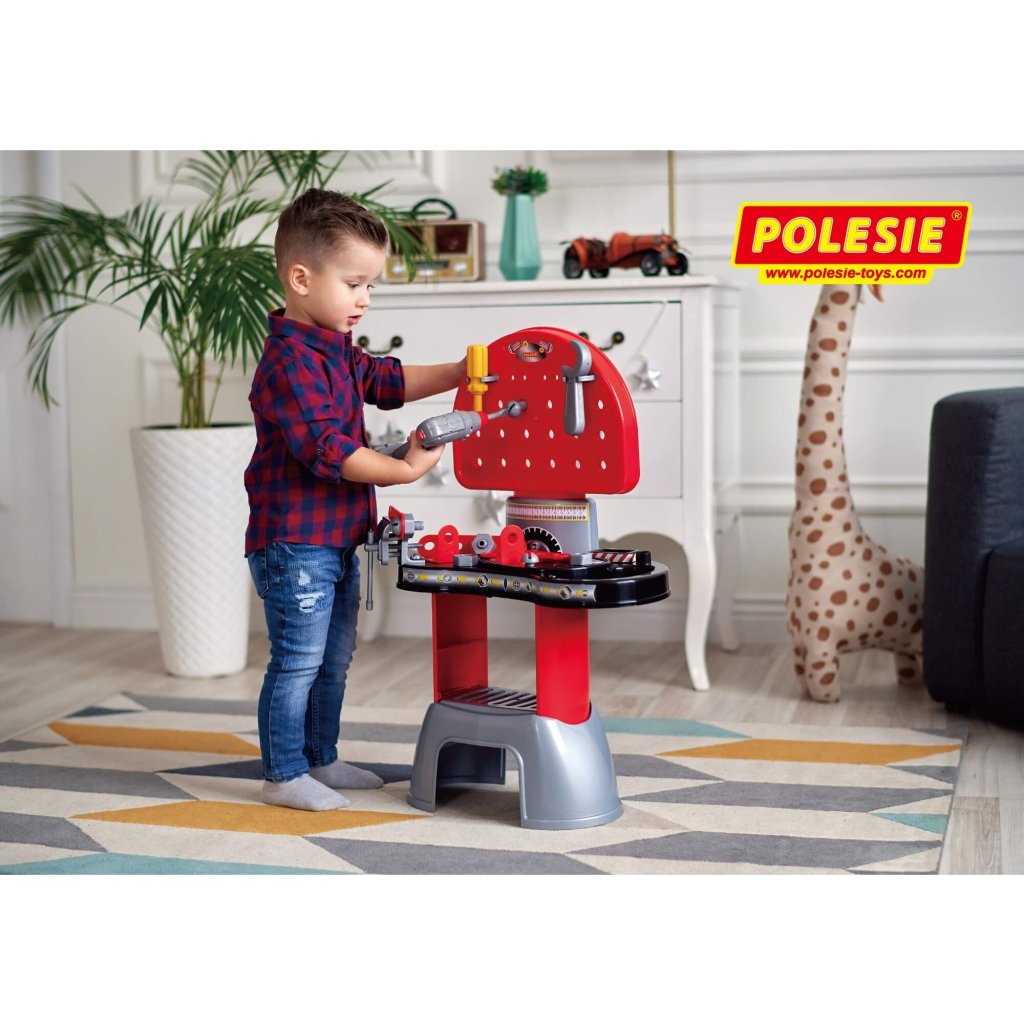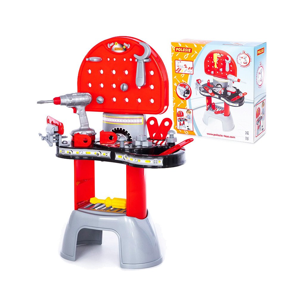 Detská dielňa s elektronickým skrutkovačom, má rozmery 475х190х500 mm. Cena je za kus. Vhodné pre deti vo veku 3+ rokov.Dodatočné parametre