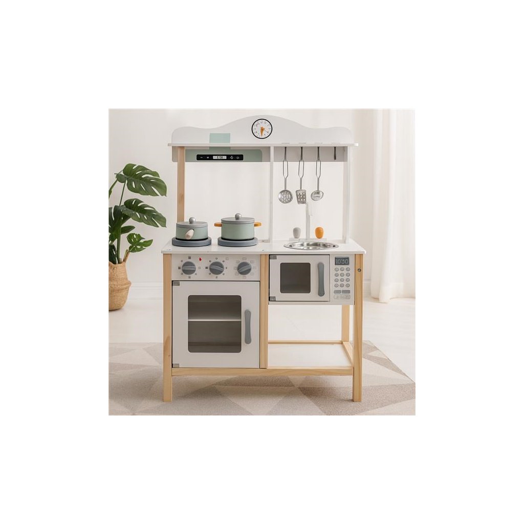 Detská kuchynka Baby Mix je krásna a štýlová drevená hračka, ktorá premení každú izbu na malé kulinárske kráľovstvo. Vďaka modernému bielemu dizajnu, realistickým detailom a vysokej kvalite spracovania je ideálnou voľbou pre deti, ktoré milujú hranie rolí, varenie a napodobňovanie dospelých.