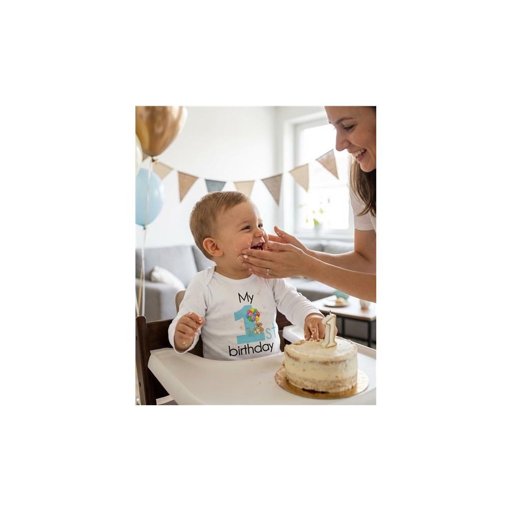 Detské body s potlačou New Baby My first birthday blue 86 (12-18m)