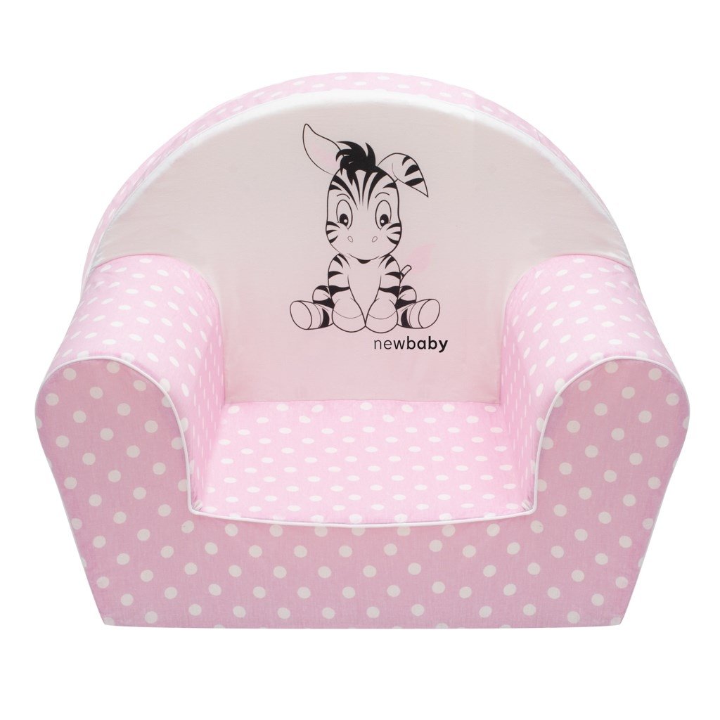 Detské kresielko New Baby Zebra je skvelým a veľmi obľúbeným doplnkom do detskej izbičky. Toto kreslo pre najmenšie deti je vyrobené z mäkkého materiálu a má snímateľný bavlnený poťah, ktorý možno prať. Poťah má veľmi príjemné farby s potlačou bodiek a zdobí ho obrázok roztomilej zebry. Rozmery: vxš: cca 42x53 cm, výška operadla cca 29 cm, šírka sedadla cca 25 cm. Zloženie: poťah 100% bavlna, vnútorný materiál: polyuretánová pena.Dodatočné parametre