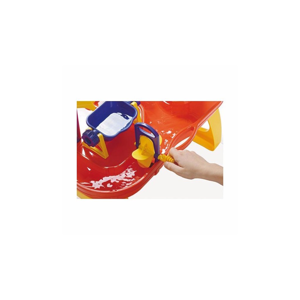 Vodný svet č.3, v balení sú vyobrazené časti, po zložení s rozmermi 53x 35 x 39 cm. Je to vlastne sústava kanálov s loďkou, vodným mlynom, ručným mlynom, funkčným ručným čerpadlom na vodu, žeriavom na vytiahnutie loďky a zábranami, ktorými môžeme ovplyvniť tok vody. Vyrobený je vo vynikajúcej kvalite značky Wader qality toys. Farebné kombinácie sú podľa aktuálneho stavu na sklade modré alebo červené.Dodatočné parametre