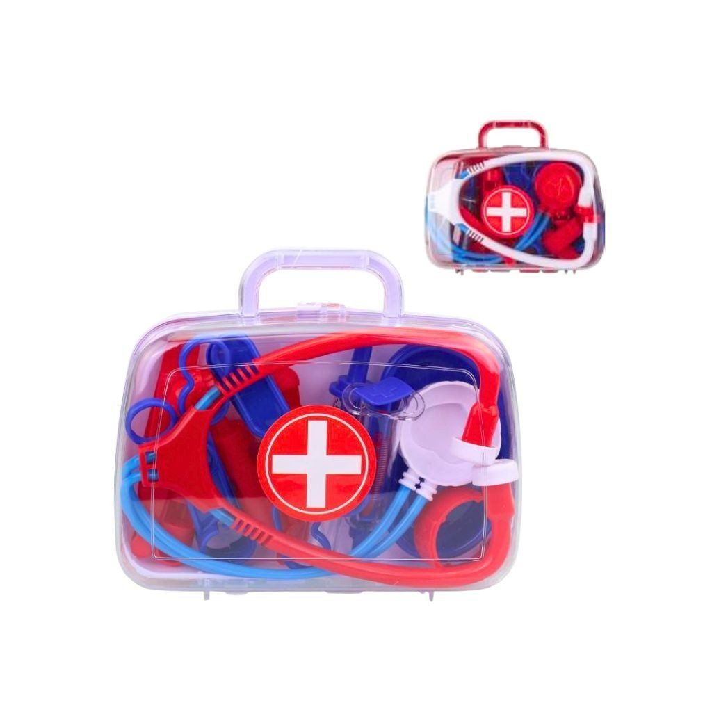 Doktorský set v kufríku obsahuje rôzne lekárske nástroje, ktoré umožňujú deťom zahrať sa na lekára a ošetrovať svojich pacientov. Praktický kufrík s rozmermi 17,5 x 15 x 4 cm slúži na jednoduché prenášanie a uskladnenie všetkých doplnkov, pričom set je dostupný v dvoch variantoch. Hra podporuje fantáziu, empatiu a rozvoj sociálnych zručností. Cena za jednu sadu.Dodatočné parametre