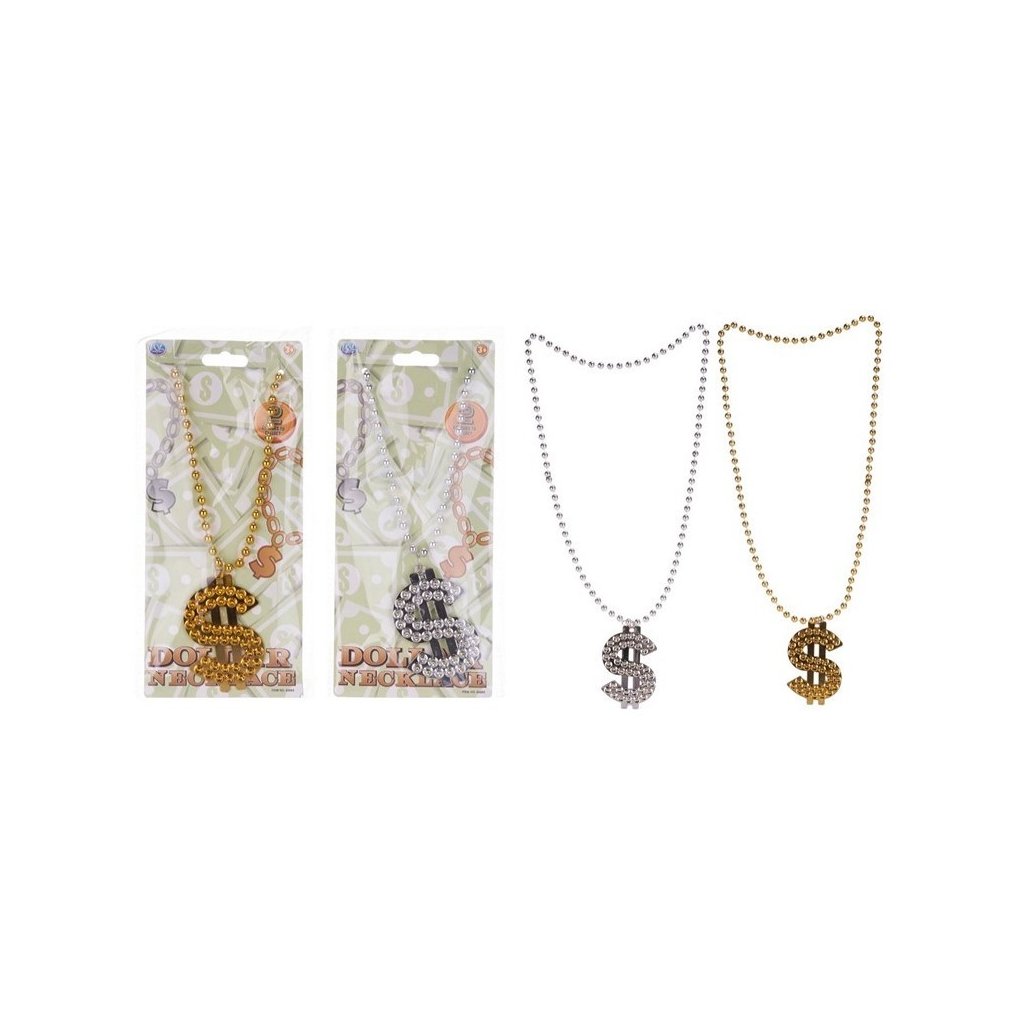 Štýlový náhrdelník s motívom dolára je výrazný doplnok na párty, karneval alebo tematické outfity. Ľahké prevedenie je pohodlné na nosenie.Dodatočné parametre