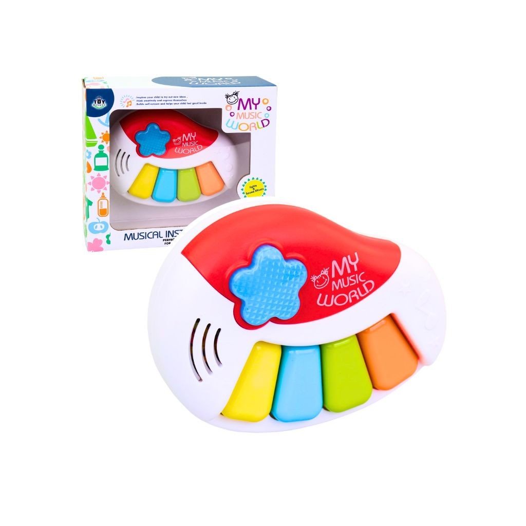 Farebné elektronické piánko My Music World poteší všetky malé deti, ktoré milujú hudbu. Po stlačení klávesov vydáva zvuky a melódie, ktoré podnecujú rytmus a hudobné cítenie. Ideálne na prvé hudobné pokusy a rozvoj zmyslu pre tón a rytmus. Piánko je na batérie 2x AA, nie sú súčasťou balenia.Dodatočné parametre