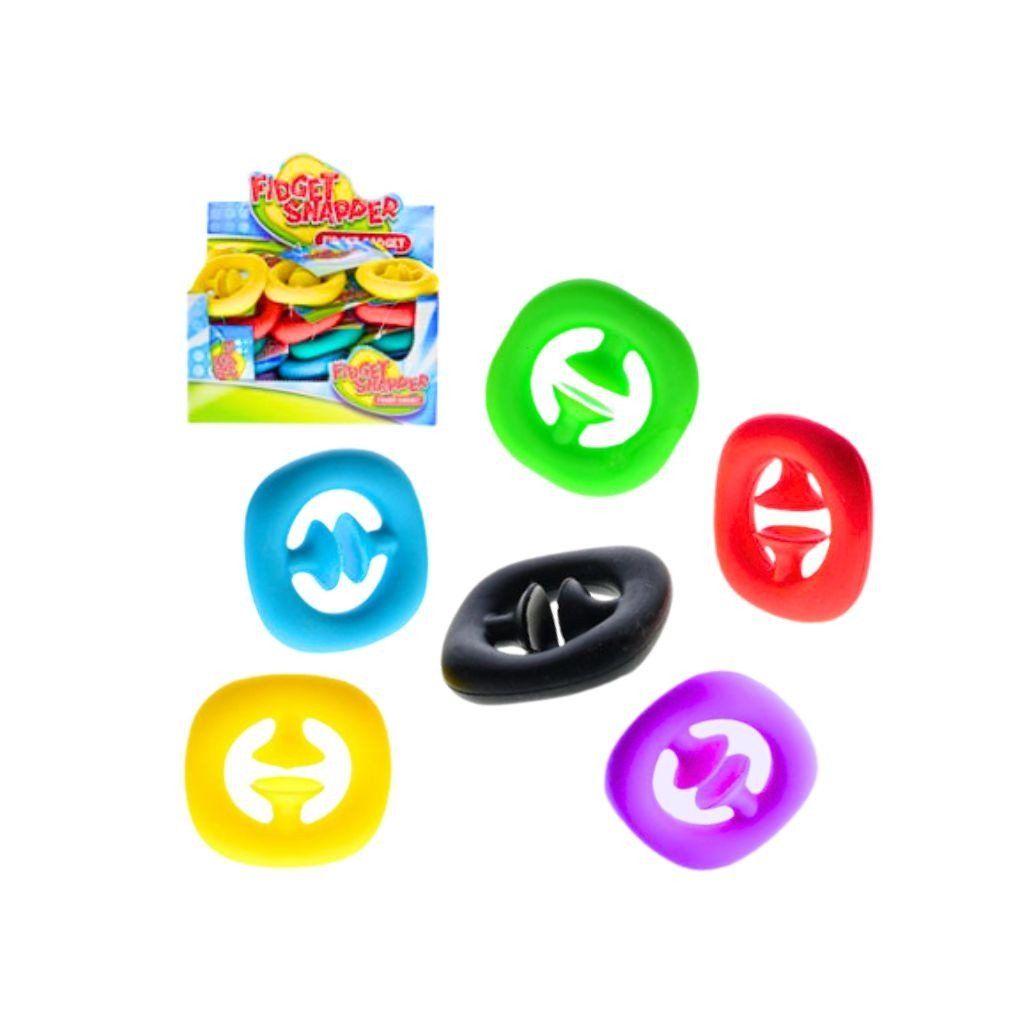 Fidget Snapper je zábavná antistresová hračka s priemerom 6 cm, ktorá pri stláčaní vydáva uspokojivý pukací zvuk a pomáha uvoľniť napätie, podporuje sústredenie, jemnú motoriku a zábavu pri hre doma, v škole alebo na cestách, vyrobená z pružného materiálu príjemného na dotyk, dostupná v 6 rôznych farbách. Cena za jeden kus.Dodatočné parametre