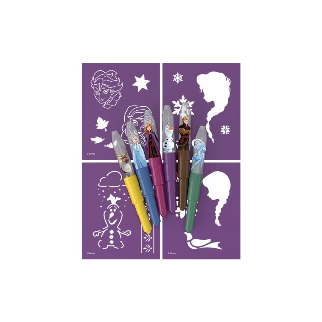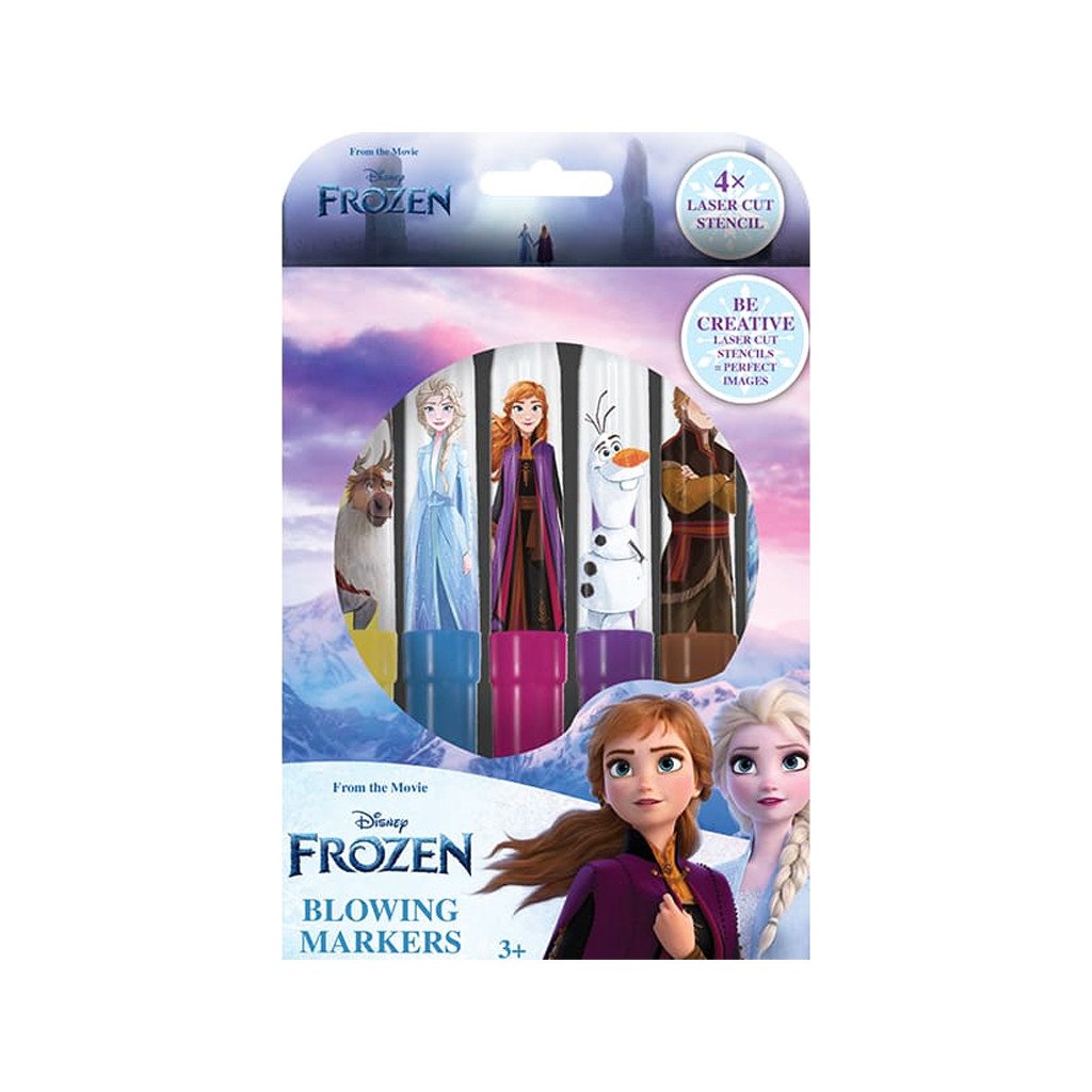 Fúkacie fixky Ľadové kráľovstvo, balenie obsahuje 6 farebných fúkacích fixiek s potlačou a 4 farebné papierové šablónky v obľúbených rozprávkových motívoch. Má rozmery 188 X 120 X 22 mm. Cena je za balenie. Vhodné pre deti 3+.Dodatočné parametre
