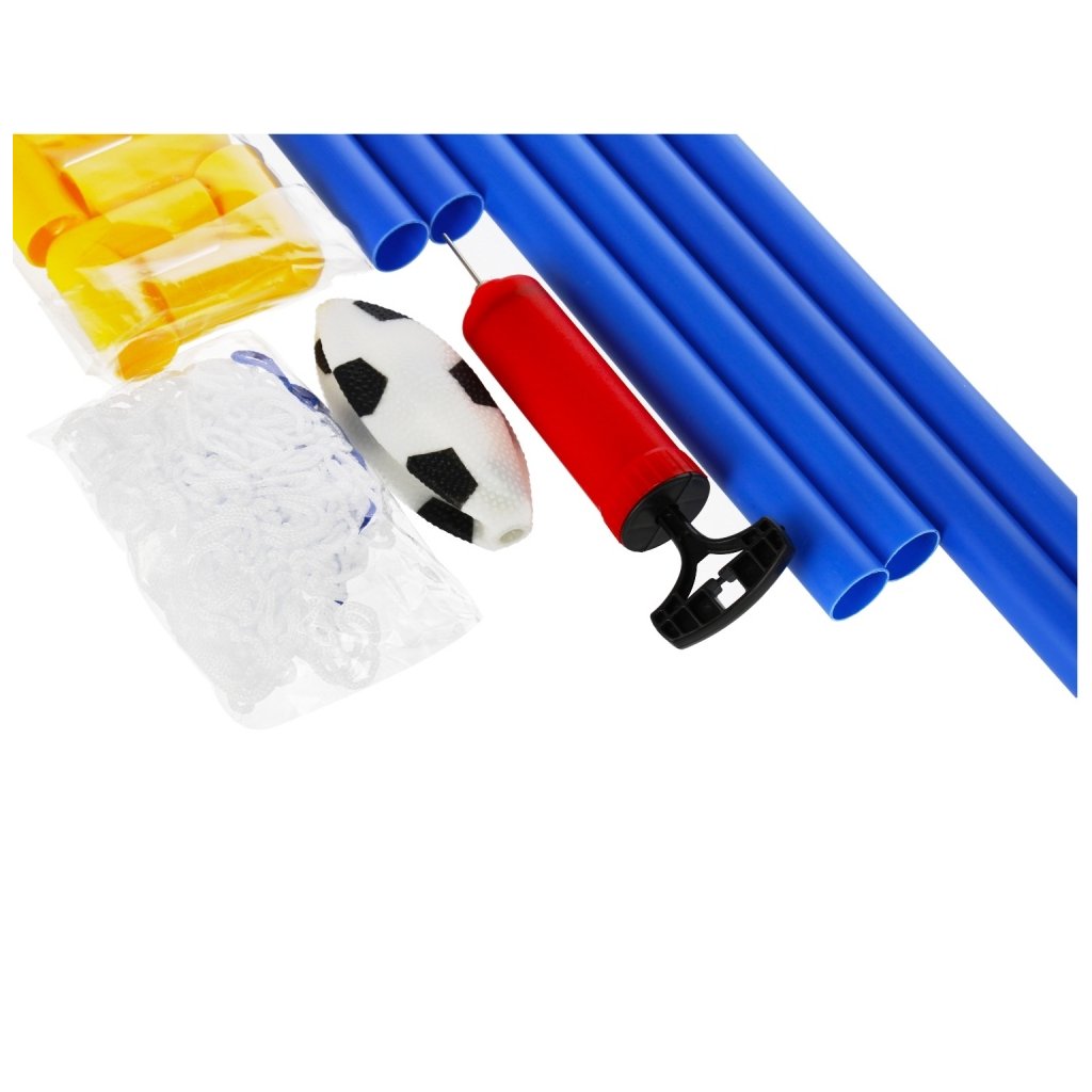 Futbalová súprava obsahuje: plastovú bránku (12 kusov), sieť a loptu. Súpravu si môžete zostaviť sami. Všetky prvky sú zabalené v plastovom vrecku. Po ich vybratí ich zostavte podľa návodu, ktorý je súčasťou balenia.- Vlastnosti výrobku: veľké plastové diely, bezpečné pre dieťa,
