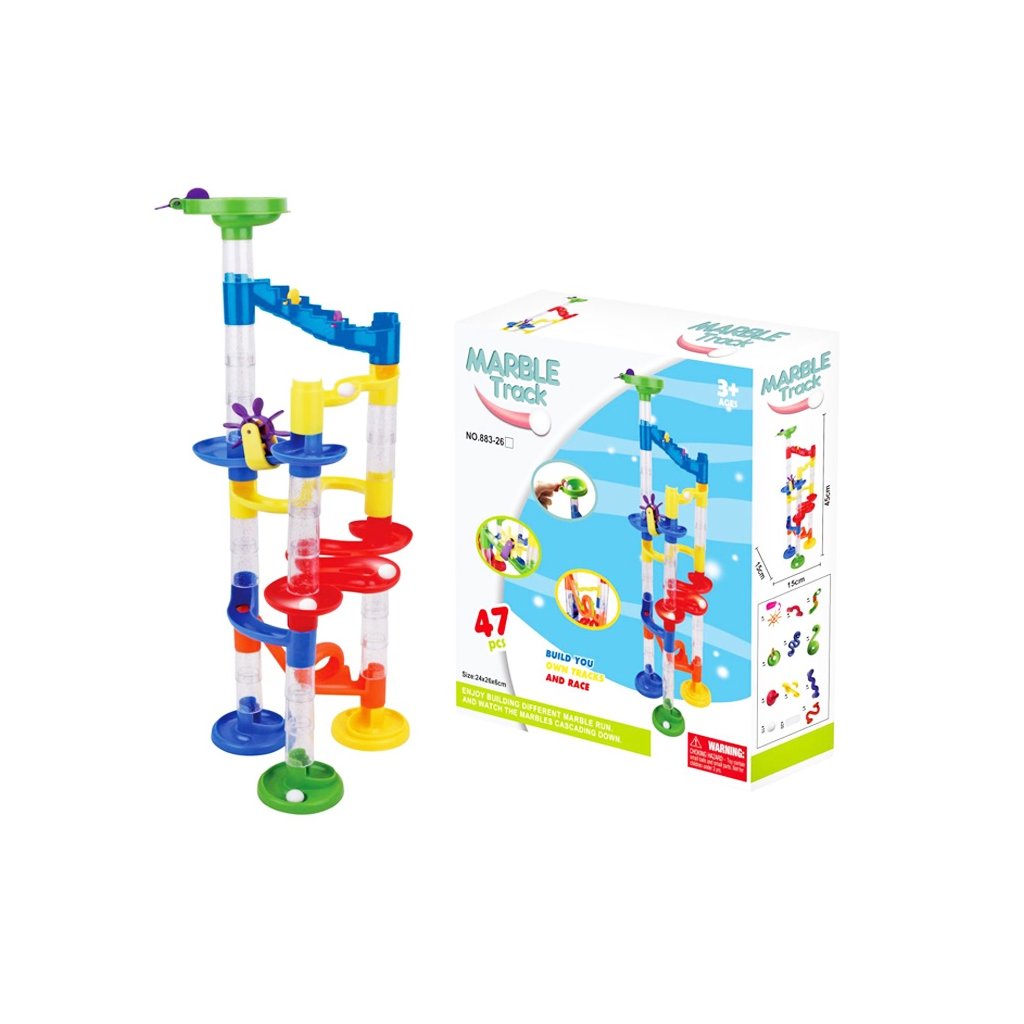 Plastová guličková dráha sľubuje veľa zábavy. Obsahuje rôzne zábavné prvky ako mlynský bicykel alebo šmykľavky. Rozmery balenia cca 21 x 28 x 7,5 cm. Celkom 47 dielikov. Vek 3+. Cena je uvedená za 1 ks výrobku.Dodatočné parametre