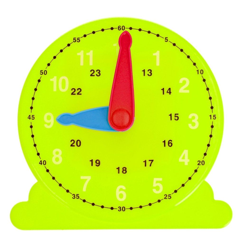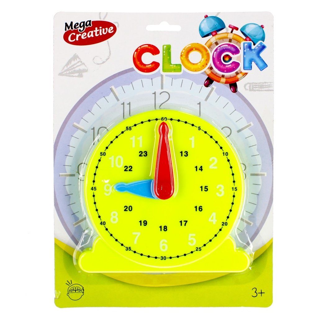 Hodinky majú pohyblivé ručičky, aby sa dieťa naučilo správne hodiny, majú rúčku, ktorá uľahčí umiestnenie hodín, napríklad ovládanie hodiniek. Pri učení o hodinách, minútach a sekundách sa tiež naučia, ako zostať načas!Hračka je dostupná v štyroch farbách: žltá, modrá, červená, svetlozelená