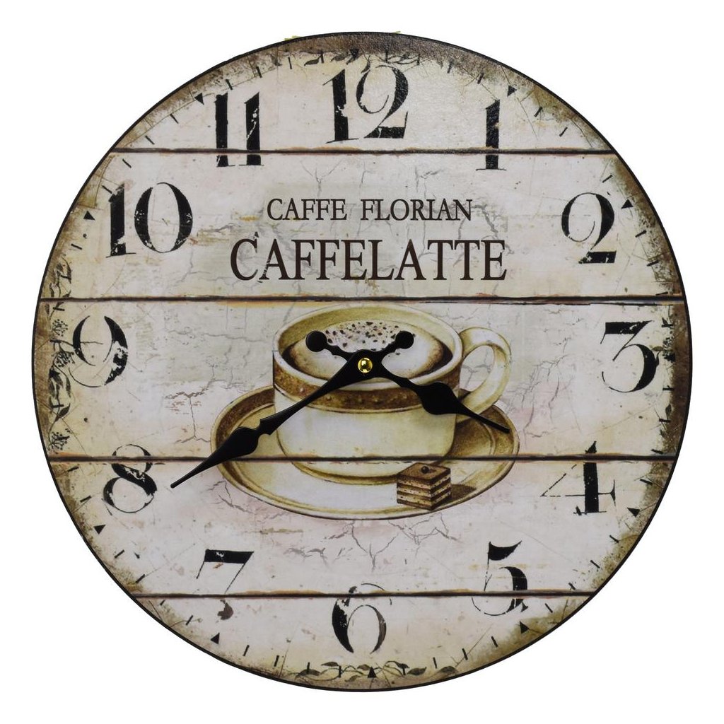 Cena za 1 ks: 7.55, HODINY NÁSTENNÉ MDF DIA 34CM CAFFELATTE