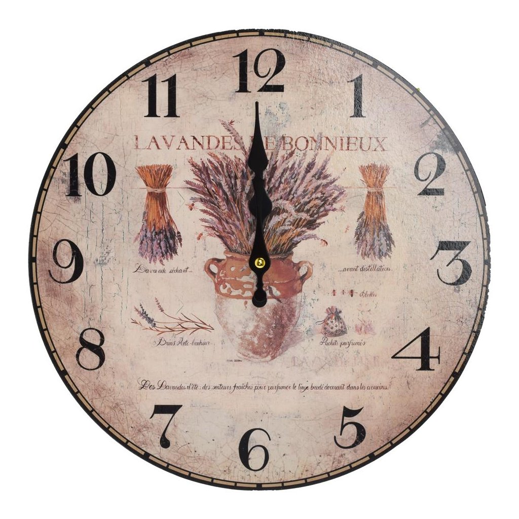 Cena za 1 ks: 7.55, HODINY NÁSTENNÉ MDF DIA 34CM LEVANDUĽA