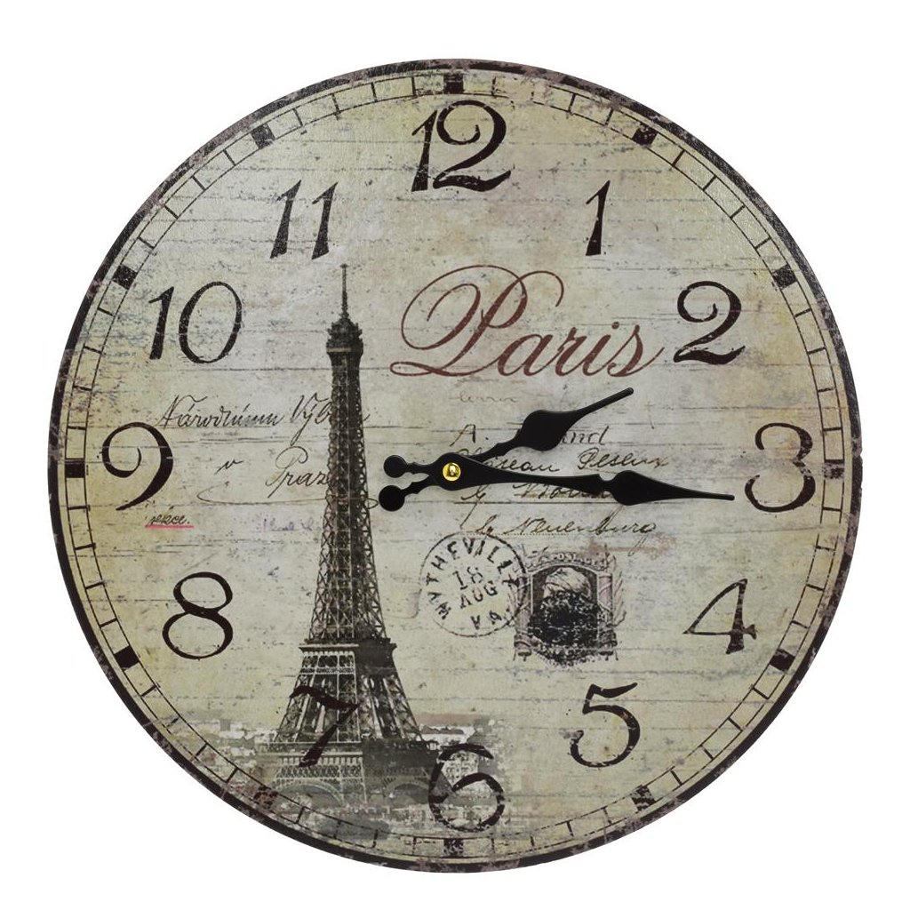 Cena za 1 ks: 7.55, HODINY NÁSTENNÉ MDF DIA 34CM PARÍŽ