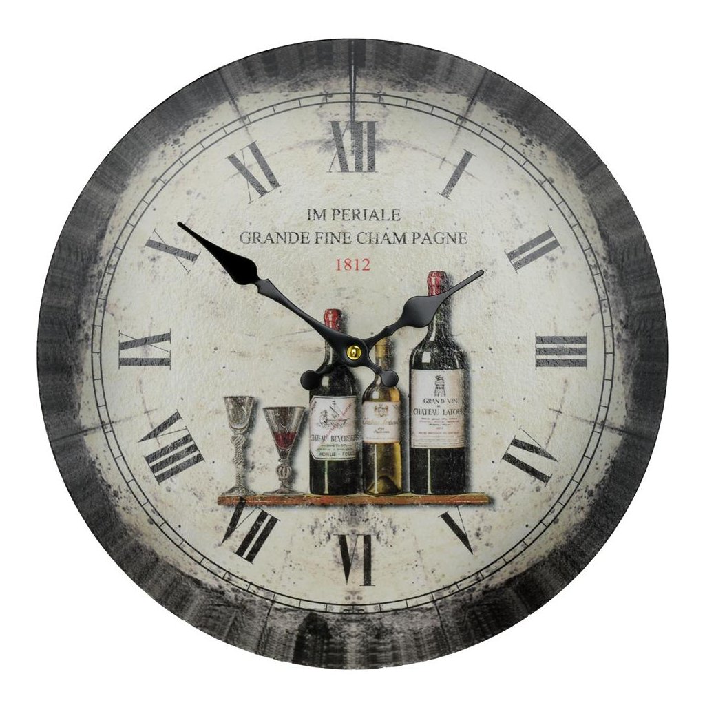 Cena za 1 ks: 7.55, HODINY NÁSTENNÉ MDF DIA 34CM VÍNO
