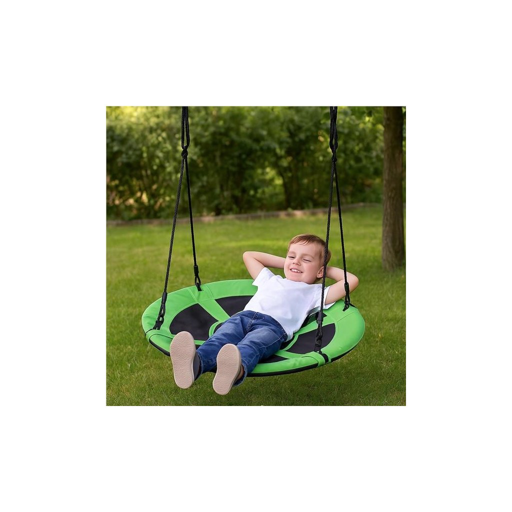 - Nosnosť až 150 kg – bezpečne unesie aj dospelého, takže hojdanie môže byť spoločnou rodinnou zábavou.