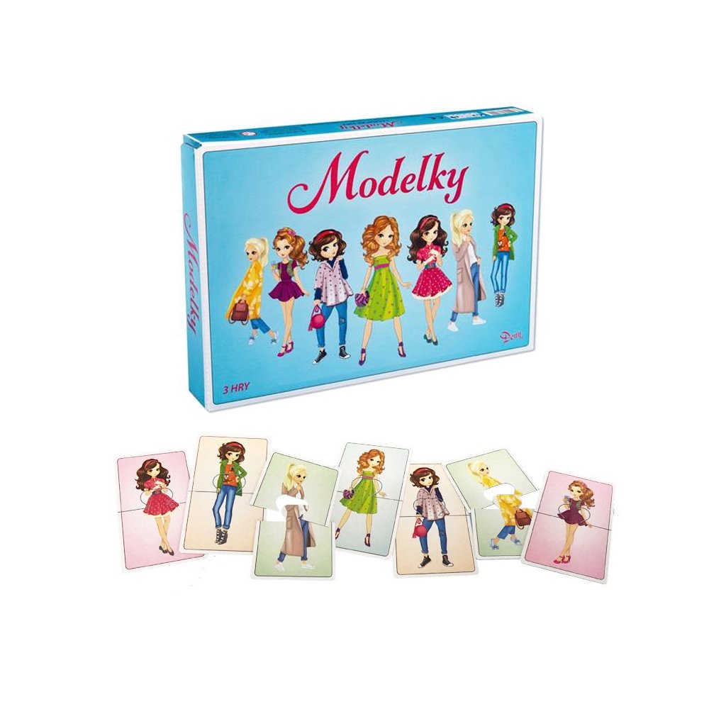 Súbor logických spoločenských hier Modelky obsahuje 40 delených kariet. Tieto karty tvoria komponenty pre 3 základné hry. Hry rozšíří deťom ich vedomosti, logický úsudok a myslenie.Dodatočné parametre