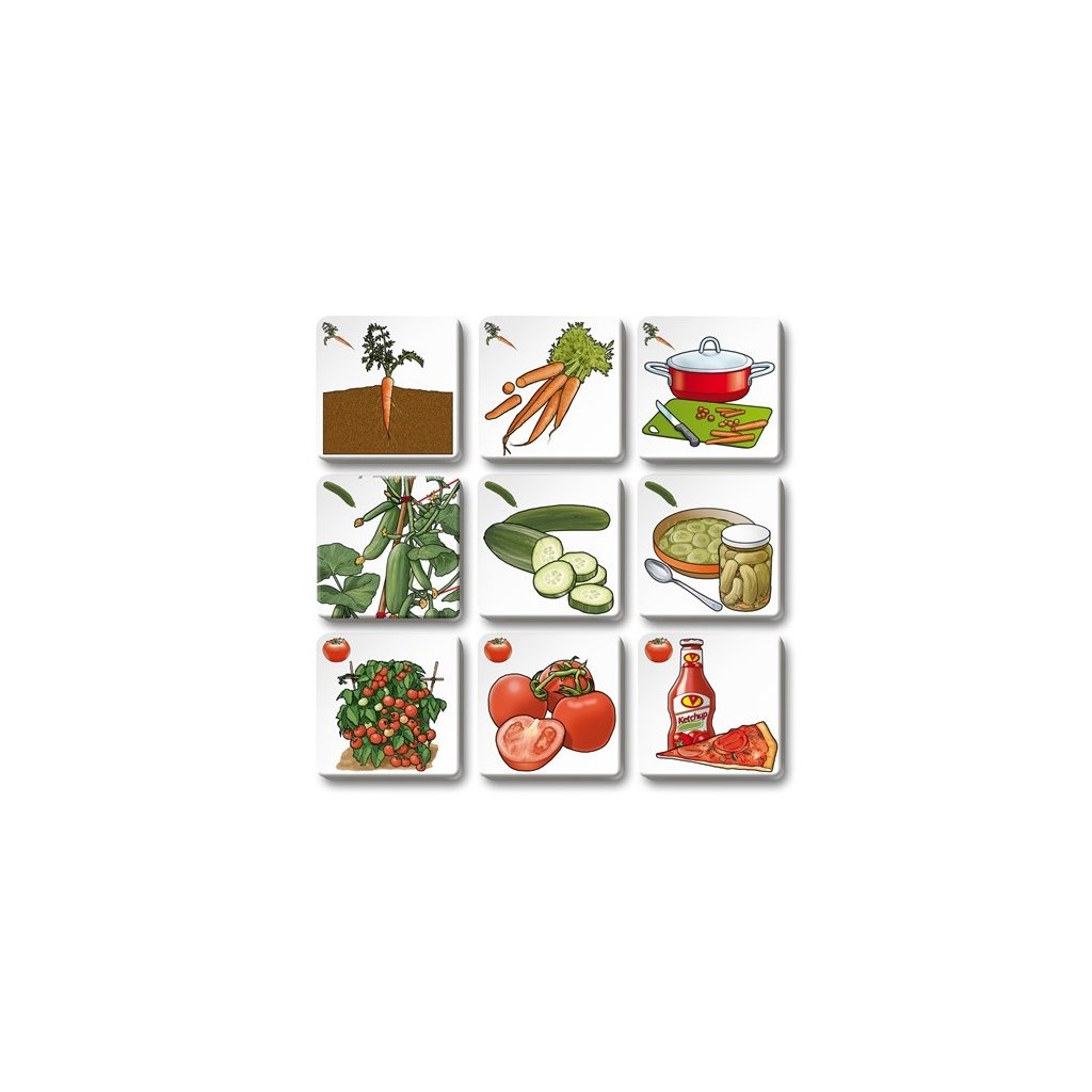 Pexetrio OVOCIE A ZELENINA je didaktická a zábavná hra, v ktorej sa naučíte poznávať rôzne druhy ovocia a zeleniny a zistíte, čo sa z nich vyrába. Balení obsahuje 3 hry: hru Pexetrio Hru LOTO-TRIO se dvěma herními plány Hru Mini Encyklopedie 36 kartiček a návody CZ / SK na všech 9 herních variant.Dodatočné parametre