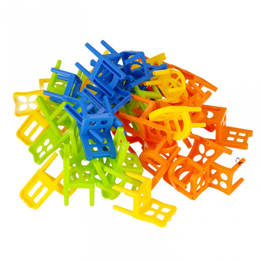 Hra Stoličky, každý hráč pridá k konštrukcii stoličku a snaží sa zabrániť jej prevráteniu. Sada obsahuje 60 plastových stoličiek. Má rozmery 25x17x7 cm. Cena je za sadu. Vhodné pre deti vo veku 3+ rokov.Dodatočné parametre