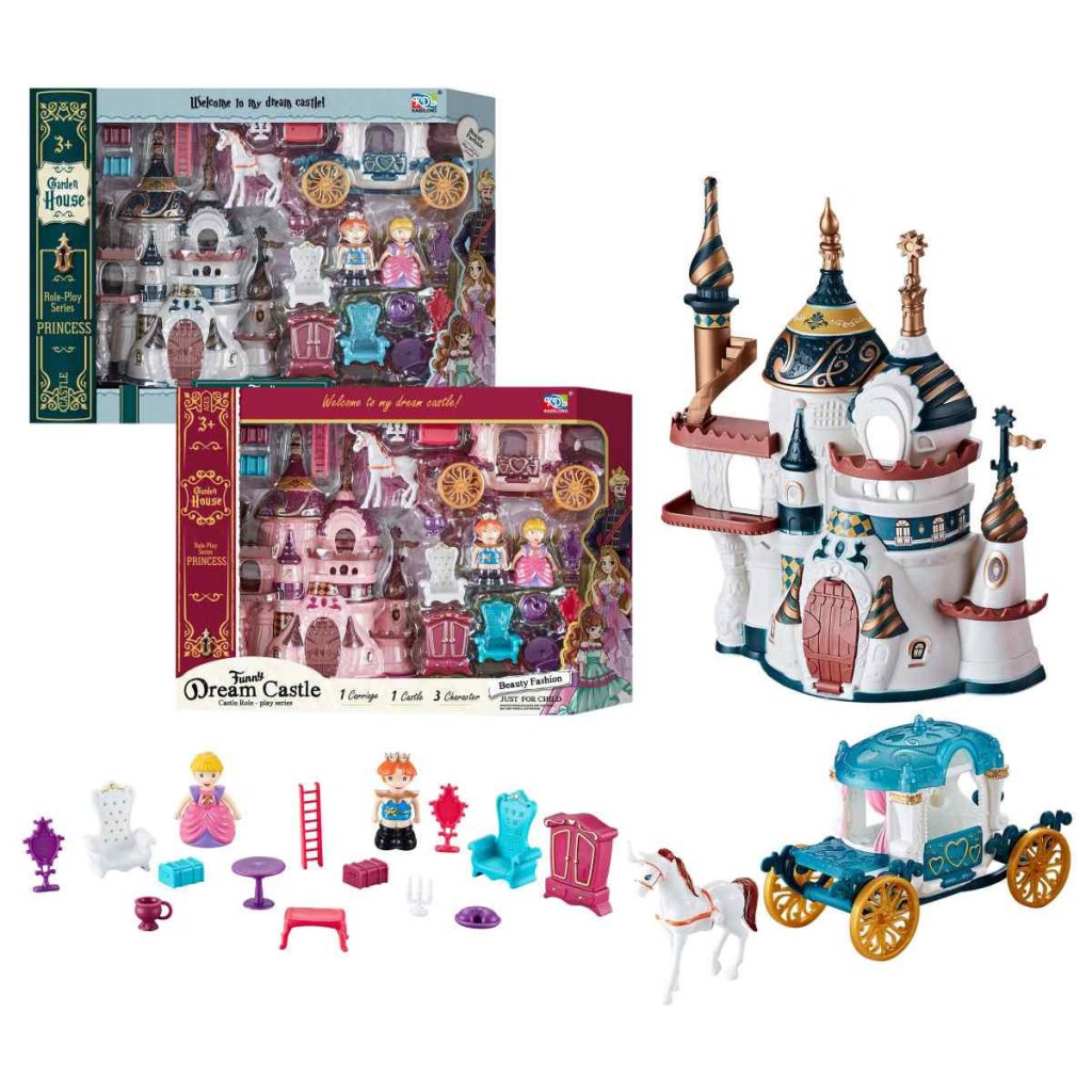 Hrad snov s kočiarom, v ytvor si svoju vlastnú rozprávku s kráľovskou rodinou, hradom a kočiarom. Balenie obsahuje hrad s padacími dverami, kočiarom, dve figúrky a nábytok. Možnosť výberu z dvoch farieb. Má rozmery 18,5x21,5 cm. Cena je za kus. Vhodné od 18 mesiacov.Dodatočné parametre
