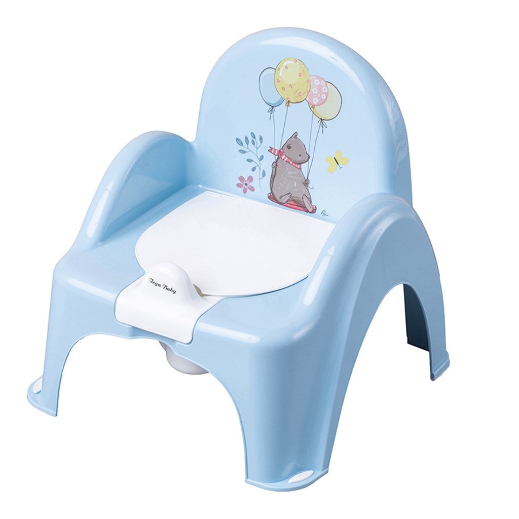 Hrajúci detský nočník s poklopom Medvedík modrý
