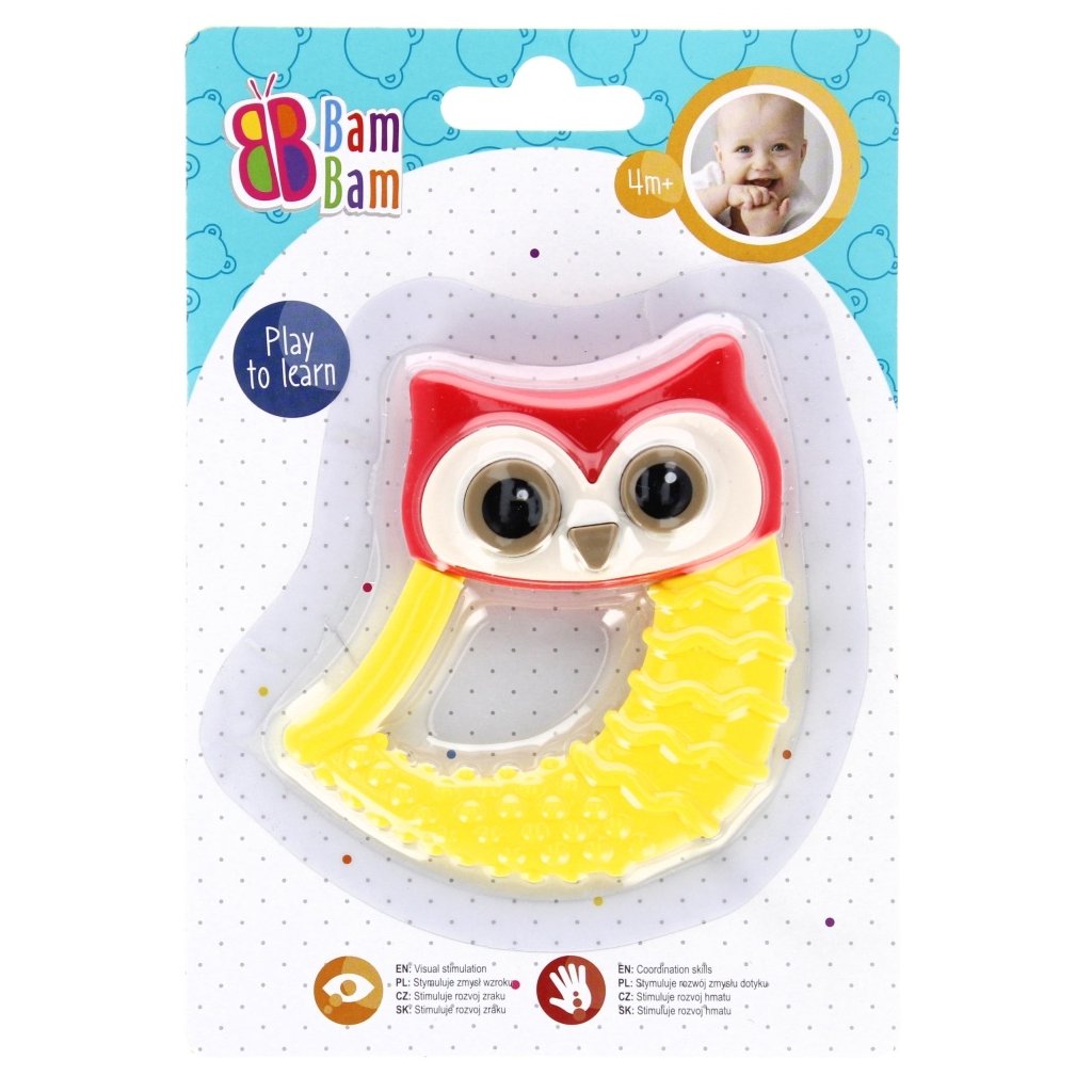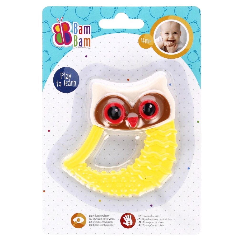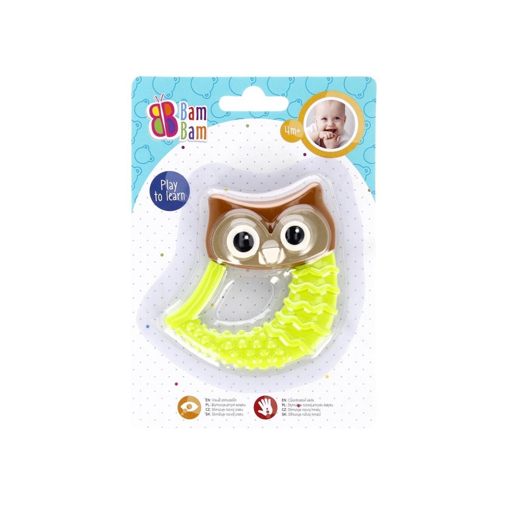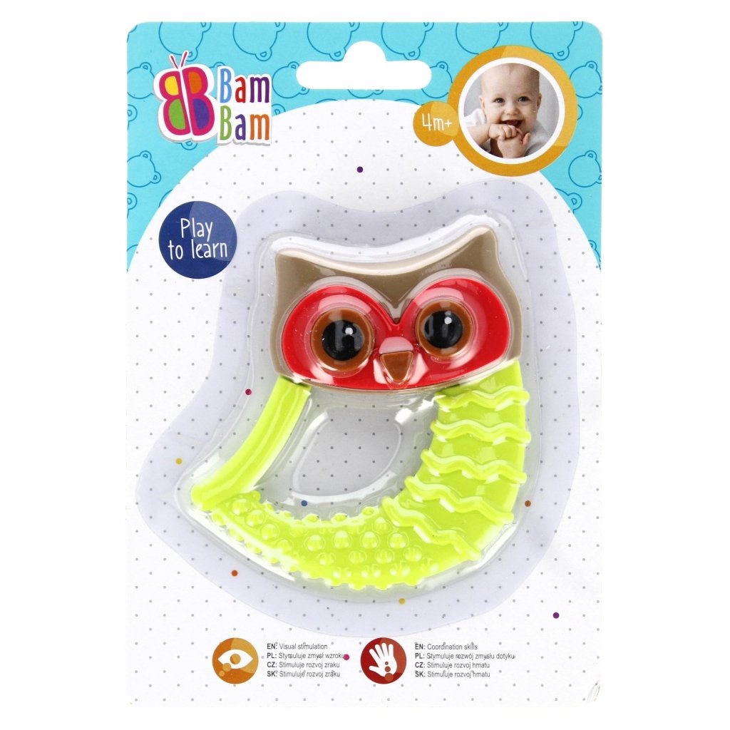 Mäkké hryzátko s rôznou textúrou, ľahko sa uchopí a drží v ruke dieťaťa. Hryzenie hračky pohltí pozornosť dieťaťa na dlhú dobu a zároveň vám umožní masírovať boľavé ďasná. Tvarovaný tvar je ideálny na naučenie sa manipulácie a uchopenia. Hračka určená pre deti od narodenia, vyrobená z bezpečných materiálov bez ftalátov, certifikovaná EN-71 a CE. Hračka je dostupná v 4 farbách. Cena za kus. Hryzátko určené pre deti od 4m +.Kryzátko SovičkaDodatočné parametre