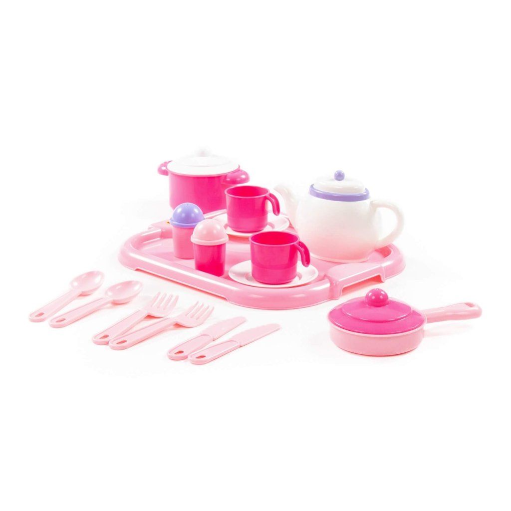Detská jedálenská súprava Nastenka obsahuje 19 dielov a je určená pre 2 osoby, súčasťou balenia je praktická tácka a riad na servírovanie jedla pri hre na domácnosť alebo kuchynku, deti si môžu pripravovať stolovanie a vytvárať vlastné scenáre pri hre, čím rozvíjajú fantáziu, kreativitu a sociálne zručnosti, vyrobené z kvalitného a odolného plastu vhodného pre detské ruky.Dodatočné parametre