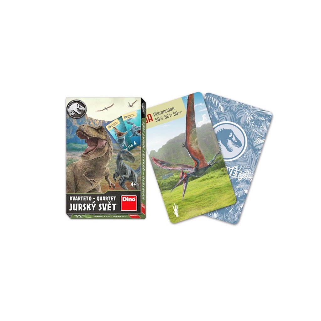 JURSKÝ SVET Kvarteto. Hra určená pre 3-6 hráčov sa skladá z 32 kariet, ktoré sú rozdelené do 8 kvartet po 4 kartách. Karty v jednotlivých kvartetoch tvoria tematické skupiny označené zhodnými symbolmi. Cieľom každého z hráčov je získať čo najviac kvartetov. Vek 4+Dodatočné parametre