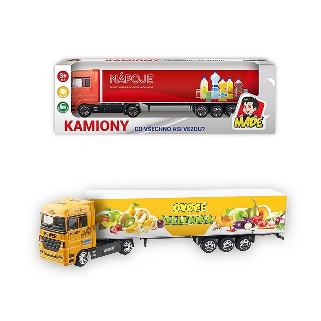 Skvelý kamión vo veselých farbách poteší na dlhých cestách pri preprave. Kamióny idú, čo asi v nich vezú? Vyber si svoju vlastnú farbu a typ, čo budeš prevážať. Materiál plast. Doporučený vek 3 +Dodatočné parametre