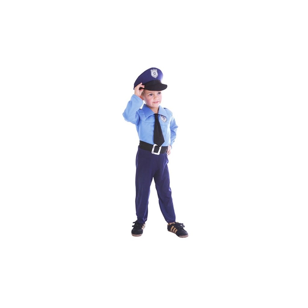 Karnevalový kostým Policajt, pre deti s výškou 94 - 101 cm. V balení nájdete: kombinézu, čiapku, kravatu, opasok Neobsahuje: topánky.Dodatočné parametre