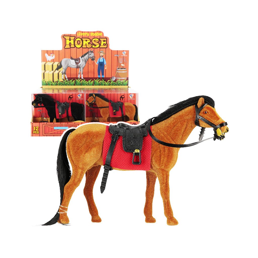 Koník so sedlom, má odnímateľné sedlo a postroj. Na výber z rôznych farebných variánt. Balené v boxe po 12 ks. Cena je za kus. Má rozmery 15x12x cm. Vhodné pre deti vo veku 3+ rokov.Dodatočné parametre