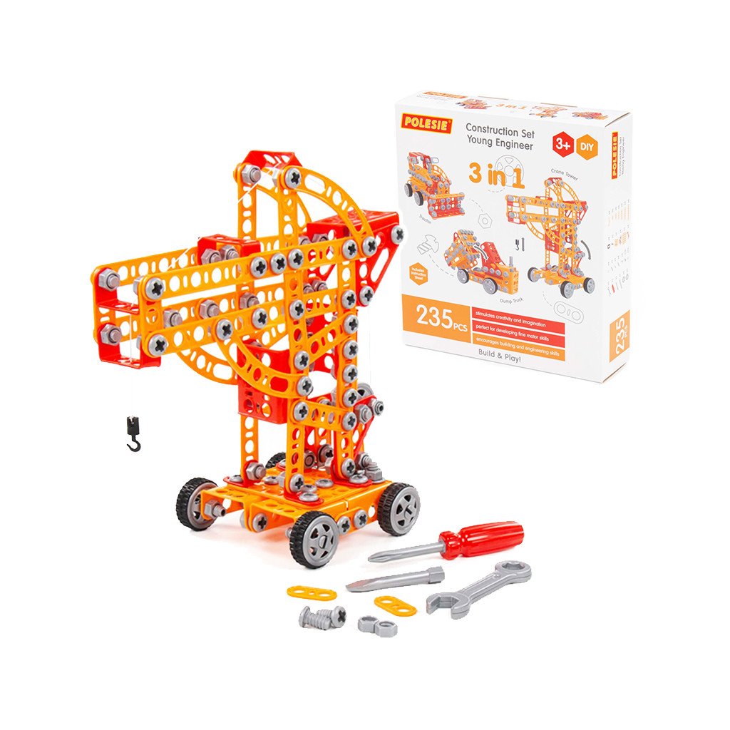 Konštrukčný set Mladý inžinier 235, umožňuje deťom poskladať si vlastný stroj zo stavebných dielikov. Má rozmery 240х65х273 mm. Cena je za kus. Vhodné pre deti vo veku 3+ rokov.Dodatočné parametre