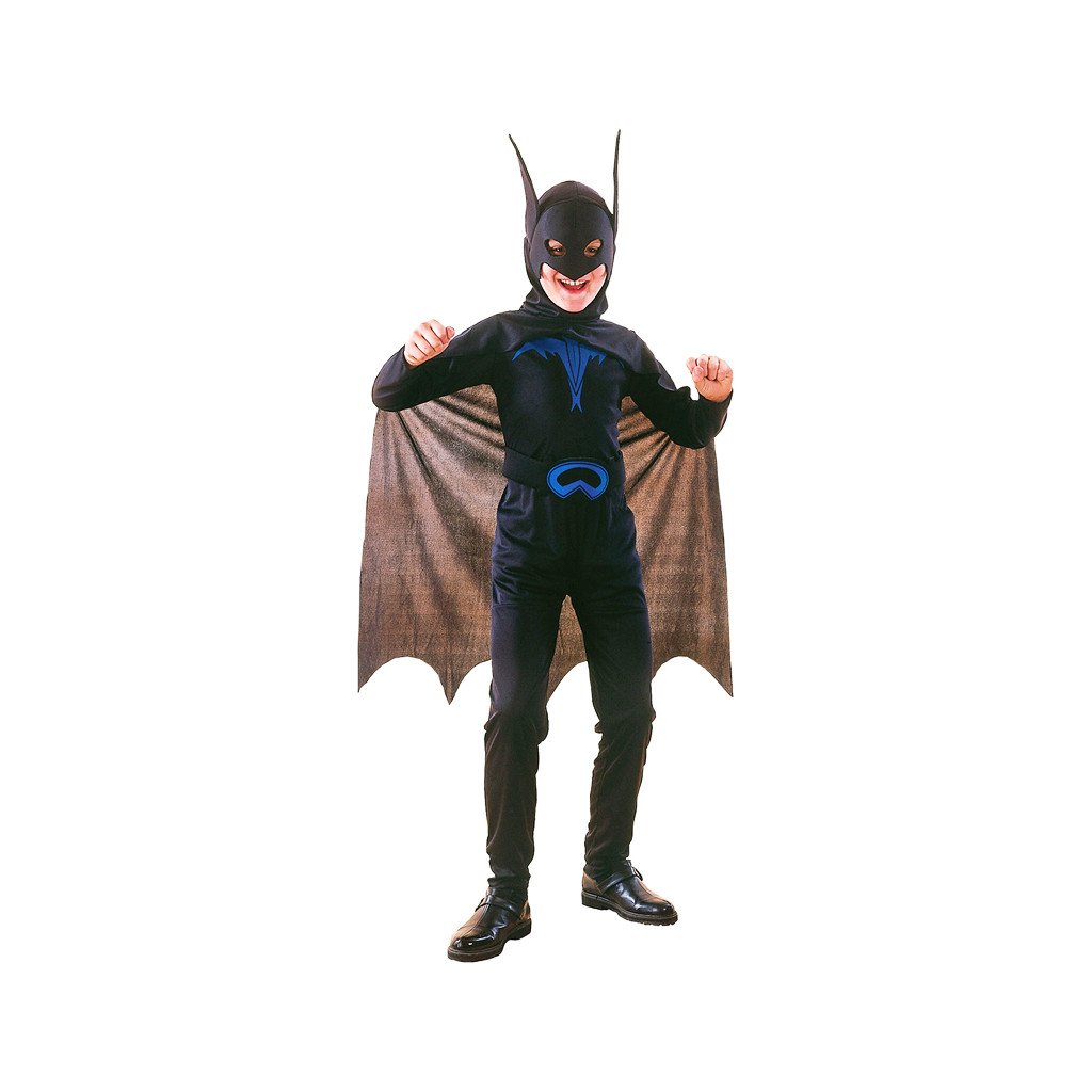 Kostým na karneval Bat, je stredne veľký 110-120 cm. Balenie obsahuje kombinézu, plášť s kapucňou a maskou, opasok. Neobsahuje nohavice a topánky. Cena je za 1 balenie. Kostým je vhodný pre chlapcov vo veku 4–6 rokov.Dodatočné parametre