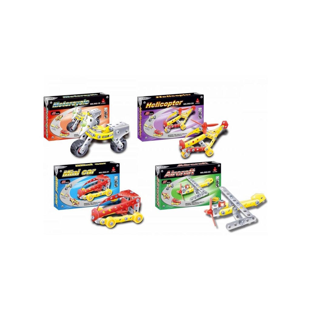 Kovová mini skladačka. Možnosť výberu zo štyroch druhov a to lietadlo, vrtulník, auto alebo motorka. Nevhodné pre deti do 3 rokov.Dodatočné parametre