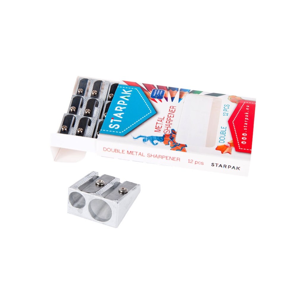 Klasické strúhadlo s dvoma čepeľami na bežné pastelky a ceruzky aj v jumbo veľkosti. Vyrobené z kovu. Nevhodné pre deti do 3 rokov. Rozmery balenia V x Š x H [cm] 1x8x10.Dodatočné parametre