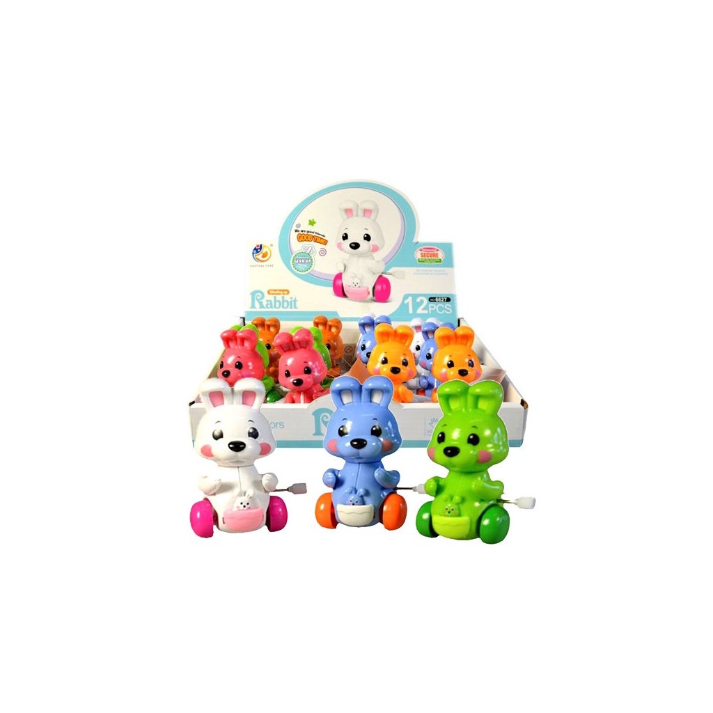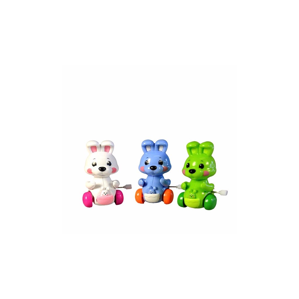 Králik na natiahnutie je 9 cm veľký, počas jazdy otáča hlavou, pohybuje rukami a pohybuje sa vpredu aj mláďatko. V ponuke je 6 farieb, cena je za kus.Dodatočné parametre
